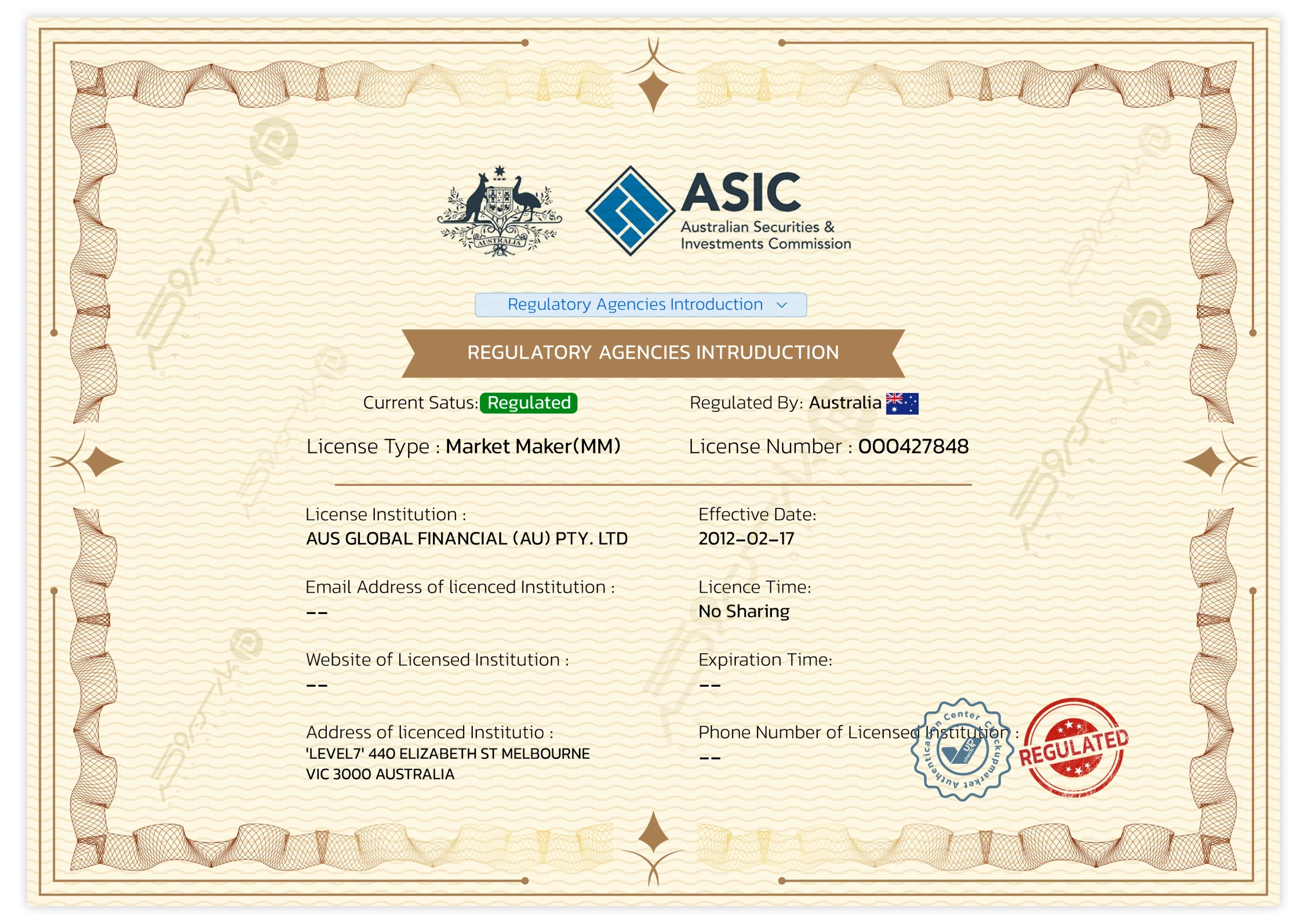 AUS Global تحت نظارت چند نهاد مالی بینالمللی فعالیت میکند: