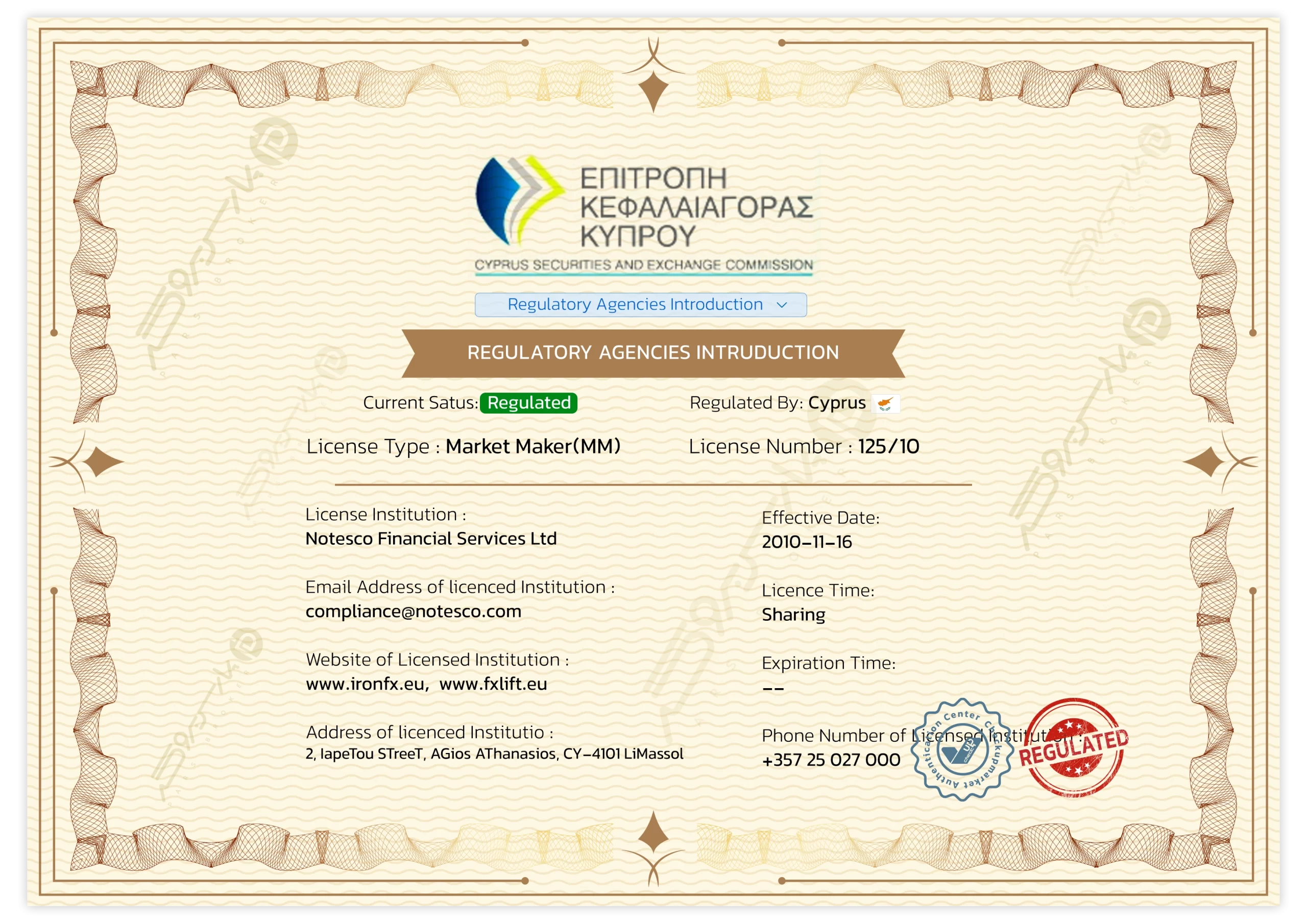 IronFX تحت نظارت چند نهاد معتبر مالی فعالیت میکند: