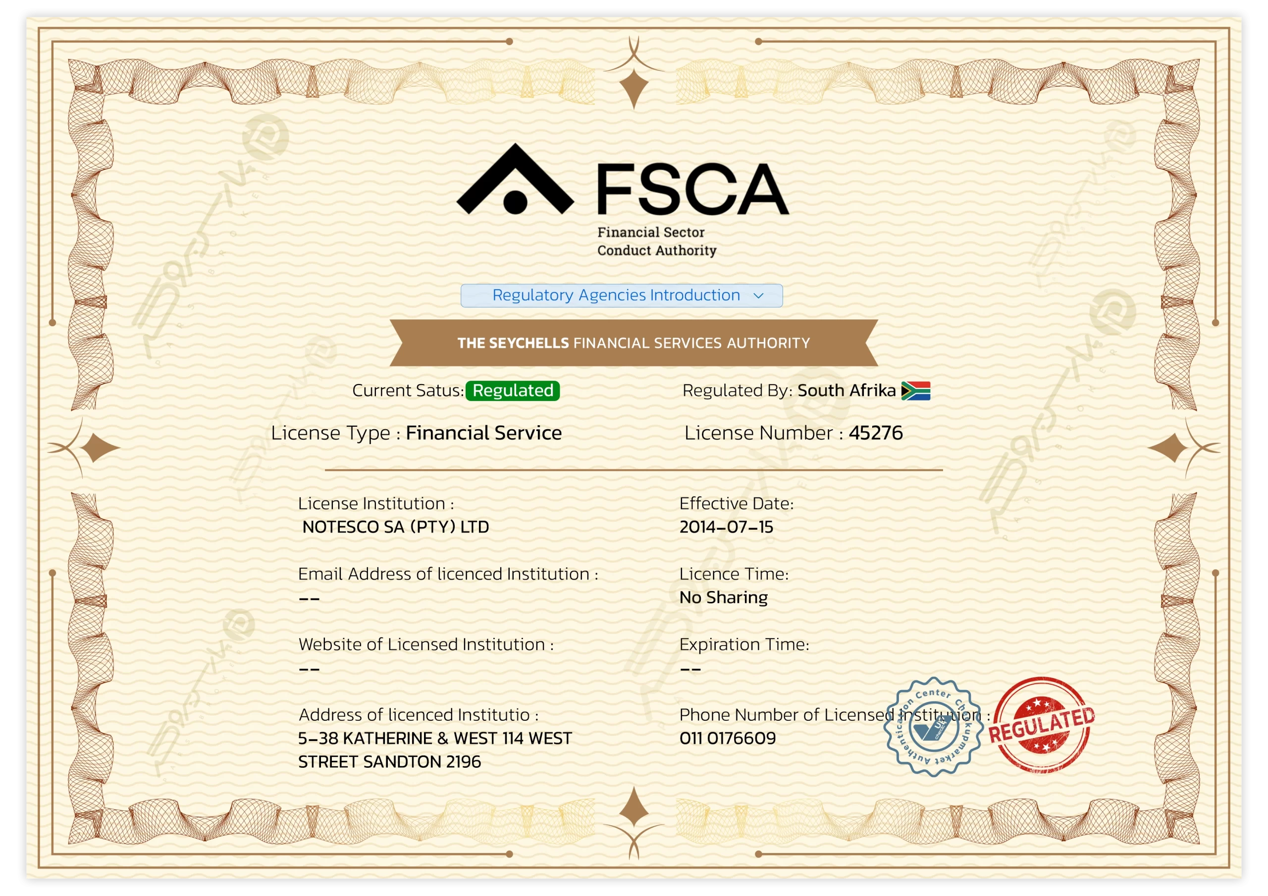 - FSCA – آفریقای جنوبی (Tier 2)